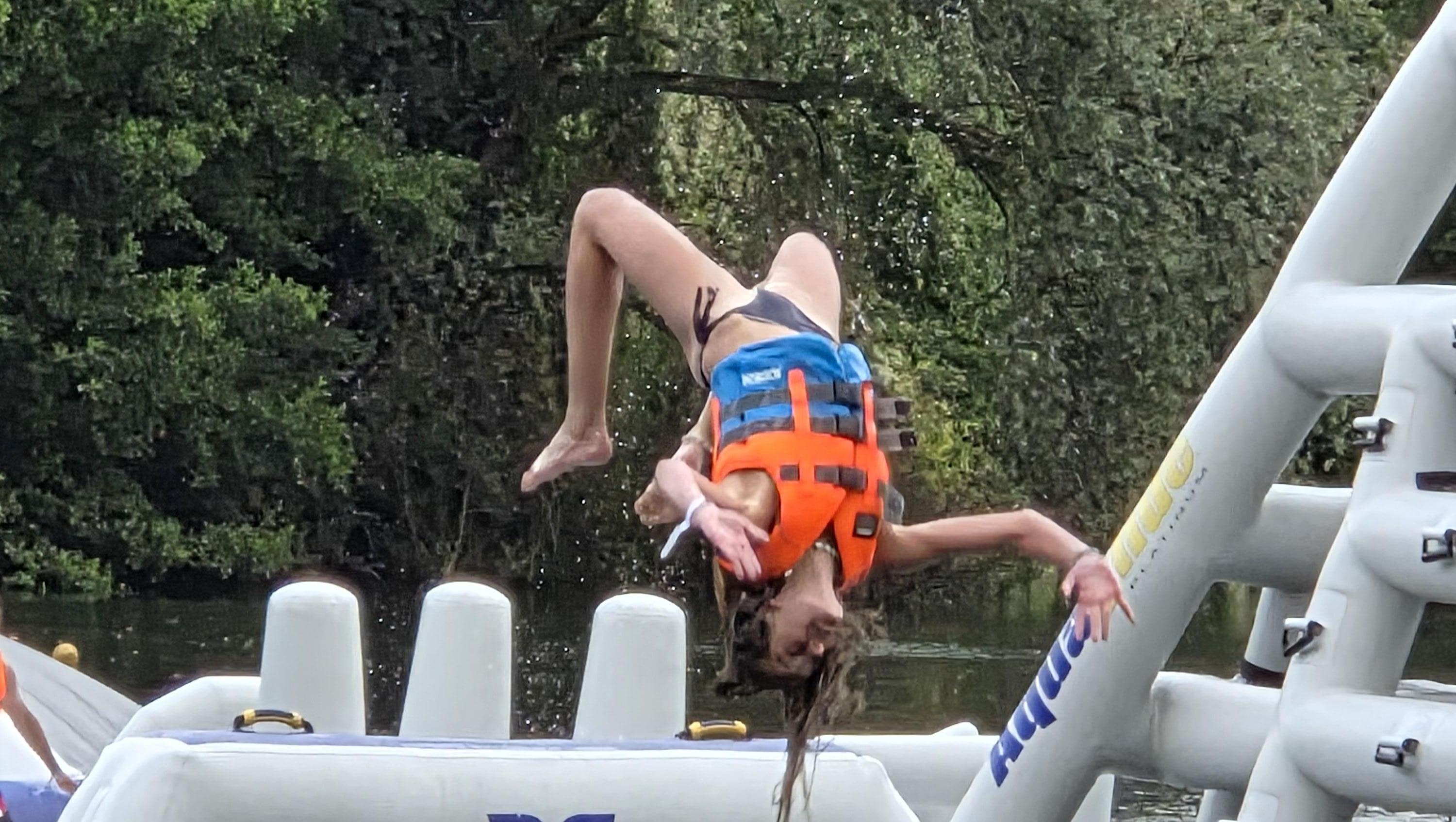 Je gaat op een immens groot inflatable 'springkasteel' allerlei uitdagende situaties aan. Van glijpartijen naar slingeren en in het water terecht komen tot van een hoogte in het water jumpen. Of loop je liever op de watermatten zonder in het water te vallen?