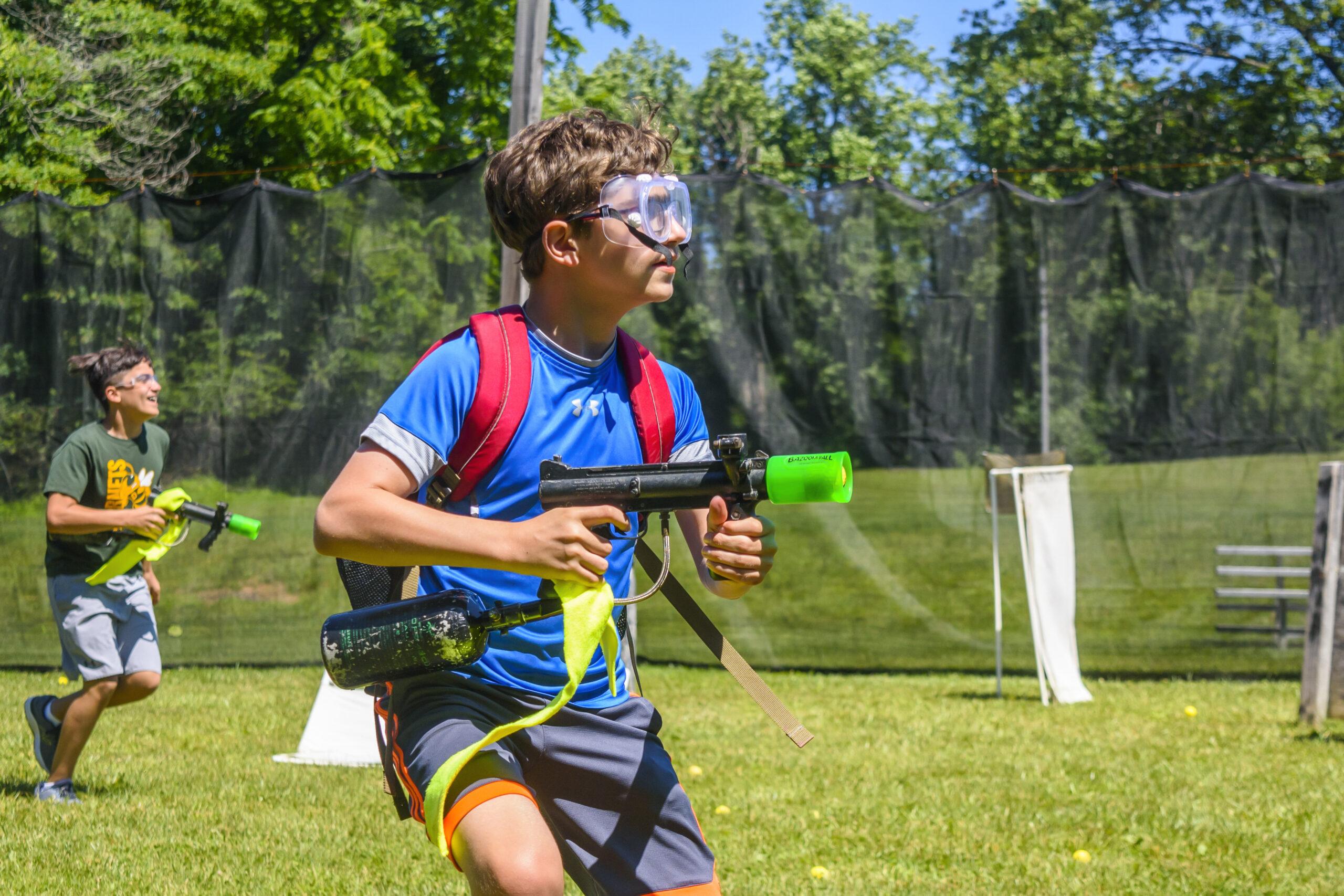 Bazooka ball is een teamsport waarbij twee teams strijden met speciale 'bazooka guns' die zachte, veilige schuimballen afvuren. Het doel is om de ballen in de basket van de tegenstander te schieten voor minpunten, of om spelers uit te schakelen met een goed schot. Het spel combineert de spanning van paintball en trefbal, maar is pijnloos en zonder verf. Wie wint er? Jij of de tegenstander?